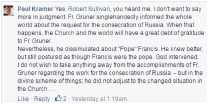 - FR. KRAMER’S GONE MAD: HE CLAIMS GOD KILLED FR.GRUNER FOR RECOGNIZING FRANCIS AS POPE (8-19-16)